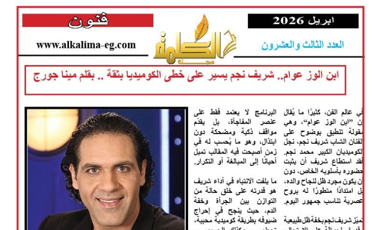 ابن الوز عوام: شريف نجم يسير على خطى الكوميديا بثقةيمكن القول إن شريف نجم يمثل جيلًا جديدًا من الكوميديين الذين يجمعون بين تراث الكبار وروح العصر. فهو يحمل بصمة والده، لكنه يضيف إليها أسلوبه الخاص، مما يجعله واحدًا من الأسماء الواعدة في الساحة الفنية. وإذا استمر على هذا النهج، فمن المؤكد أنه سيصنع لنفسه مكانة مميزة تليق باسم عائلته وتفوق التوقعات.